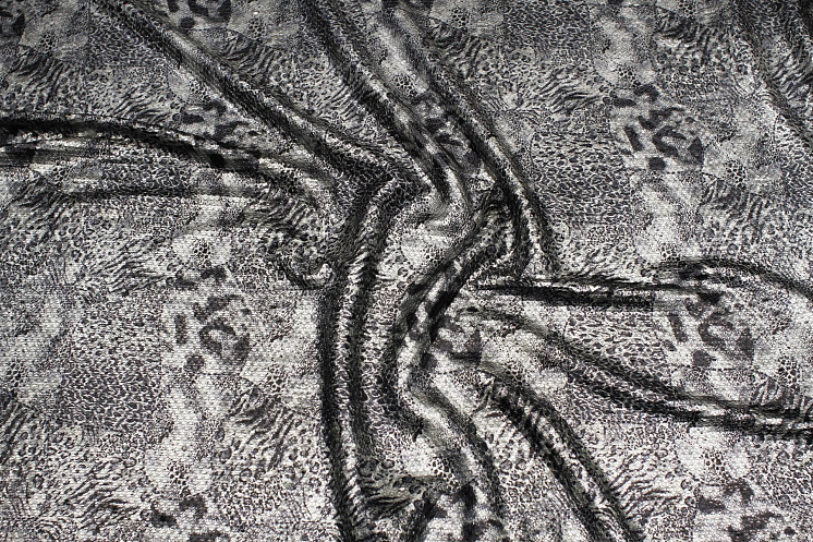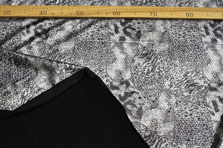 Плательная сетка расшитая пайетками (н) серо-черный змеиный принт Арт. 03-7003