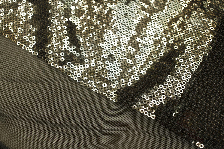 Плательная сетка расшитая пайетками (н) золотые пайетки на черном - цена 3 100 ₽ У нас самые доступные цены на Сетки и фатин в Москве, доставка по всей России - интернет магазин тканей Тессутидея. Артикул товара для заказа - 03-7439. Страна производства ткани – Италия. Ширина этого материала - 140. Состав - Полиамид 100%. Наличие остатков на складе - 3 м