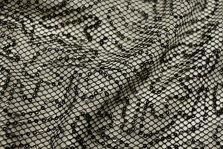 Плательная сетка расшитая пайетками (о) черная - цена 3 800 ₽ У нас самые доступные цены на Сетки и фатин в Москве, доставка по всей России - интернет магазин тканей Тессутидея. Артикул товара для заказа - 03-7392. Страна производства ткани – Италия. Ширина этого материала - 150. Состав - Полиамид 80% полиэстер 20%. Наличие остатков на складе - 17.8 м