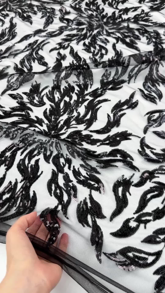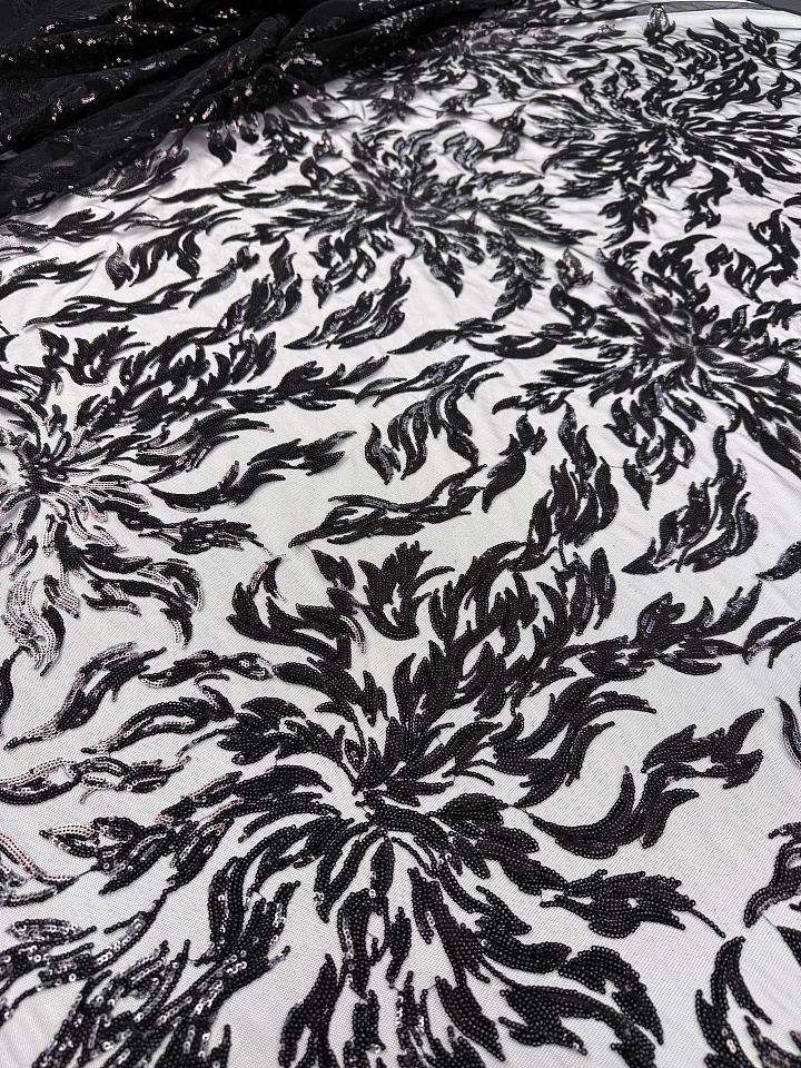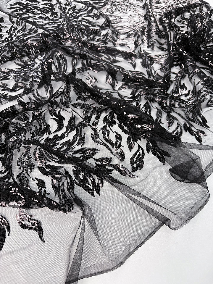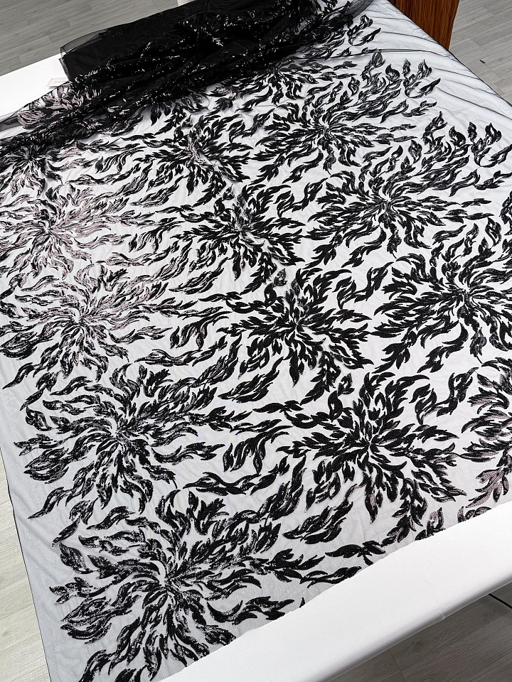 Плательная сетка расшитая пайетками (о) черная Арт. 03-7470