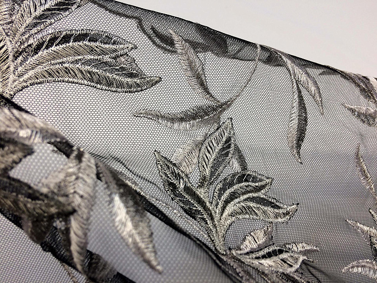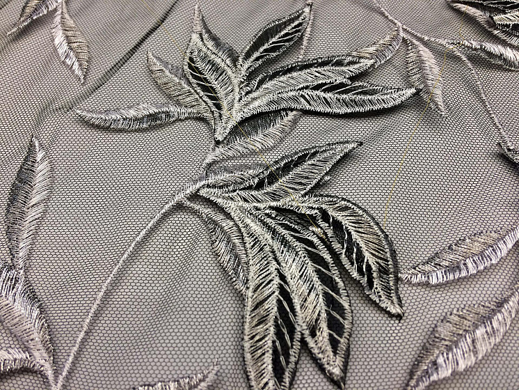 Плательная сетка с вышивкой из люрекса (н) серебро на черном - цена 8 500 ₽ У нас самые доступные цены на Нарядные ткани и вышивка в Москве, доставка по всей России - интернет магазин тканей Тессутидея. Артикул товара для заказа - 03-5084. Страна производства ткани – Италия. Ширина этого материала - 135. Состав - Полиамид 70% люрекс 30%. Наличие остатков на складе - 1.8 м
