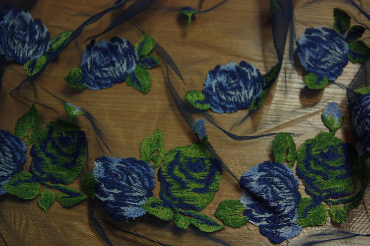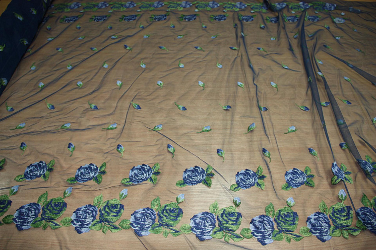 Плательная сетка с вышивкой (н) цветочный орнамент на синем ш-120см - цена 2 500 ₽ У нас самые доступные цены на Нарядные ткани и вышивка в Москве, доставка по всей России - интернет магазин тканей Тессутидея. Артикул товара для заказа - 03-3398. Страна производства ткани – Италия. Ширина этого материала - 120. Состав - Полиамид 97% эластан 3%. Наличие остатков на складе - 5.2 м