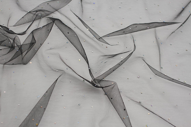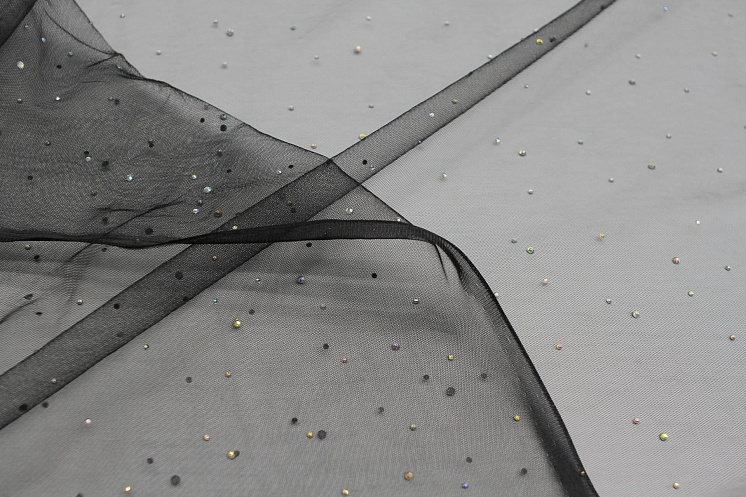 Плательная сетка со стразами (о) черная - цена 1 900 ₽ У нас самые доступные цены на Сетки и фатин в Москве, доставка по всей России - интернет магазин тканей Тессутидея. Артикул товара для заказа - 03-6859. Страна производства ткани – Италия. Ширина этого материала - 135. Состав - Нейлон 100%. Наличие остатков на складе - 8.8 м