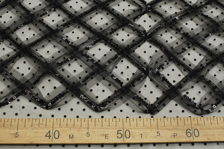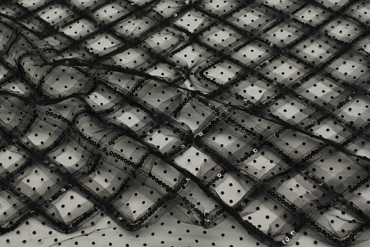 Плательная сетка в горох расшитая пайетками (о) черная Арт. 03-7383