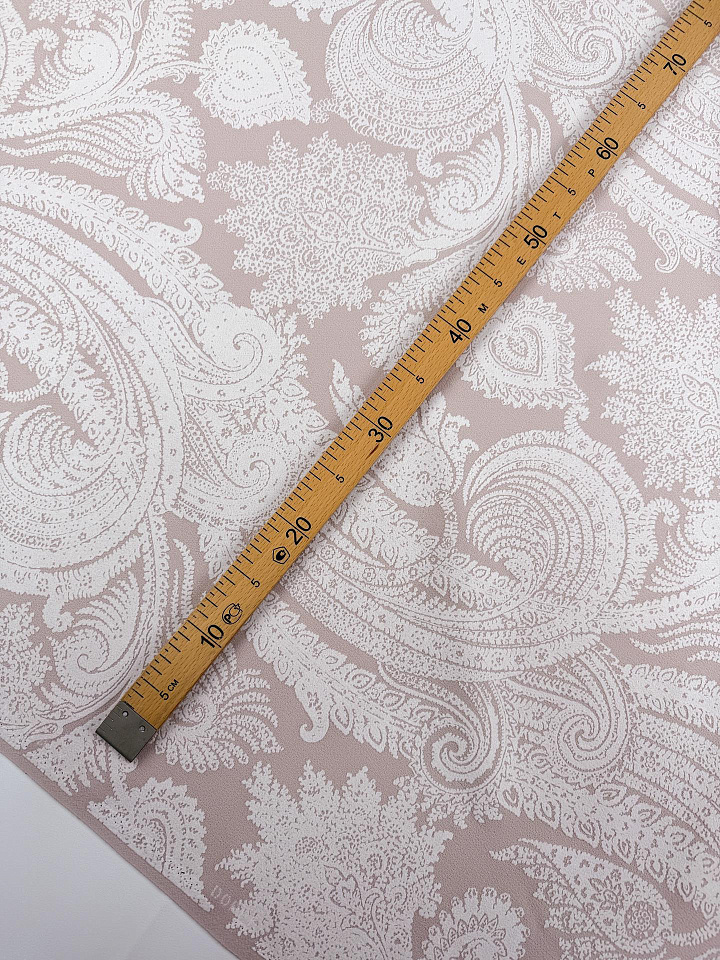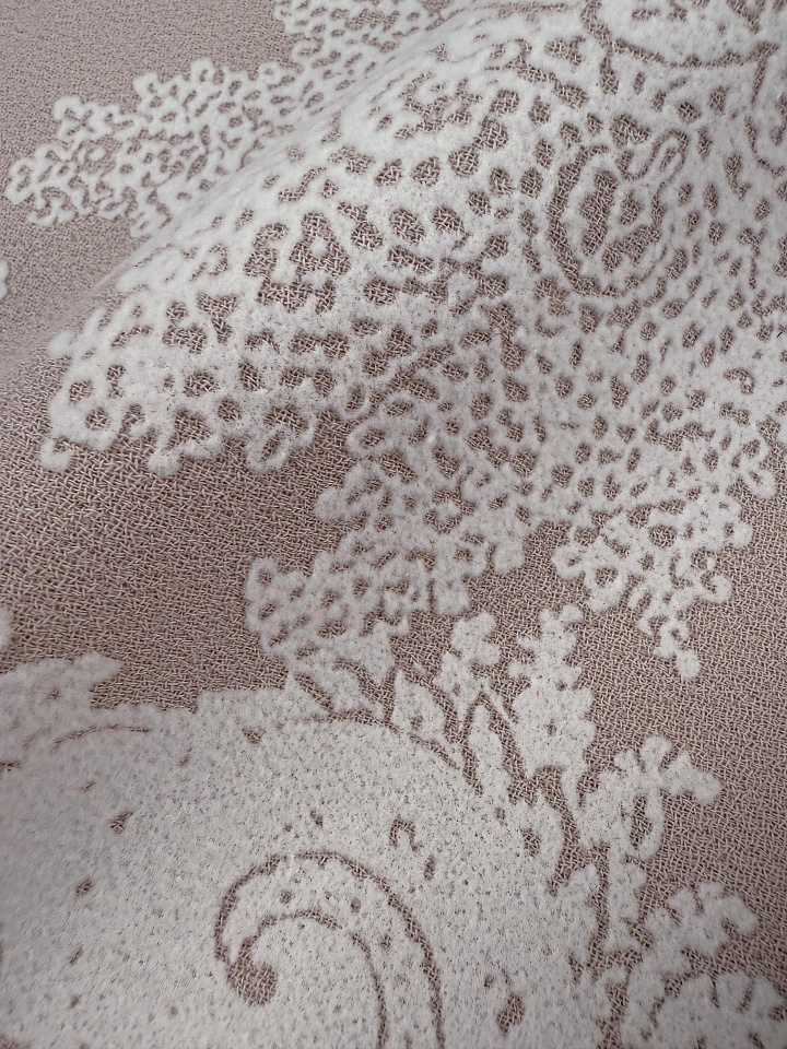 Плательная шерсть дабл креп (н) белый принт из флока на светло-серо-розовом Арт. 17-1071