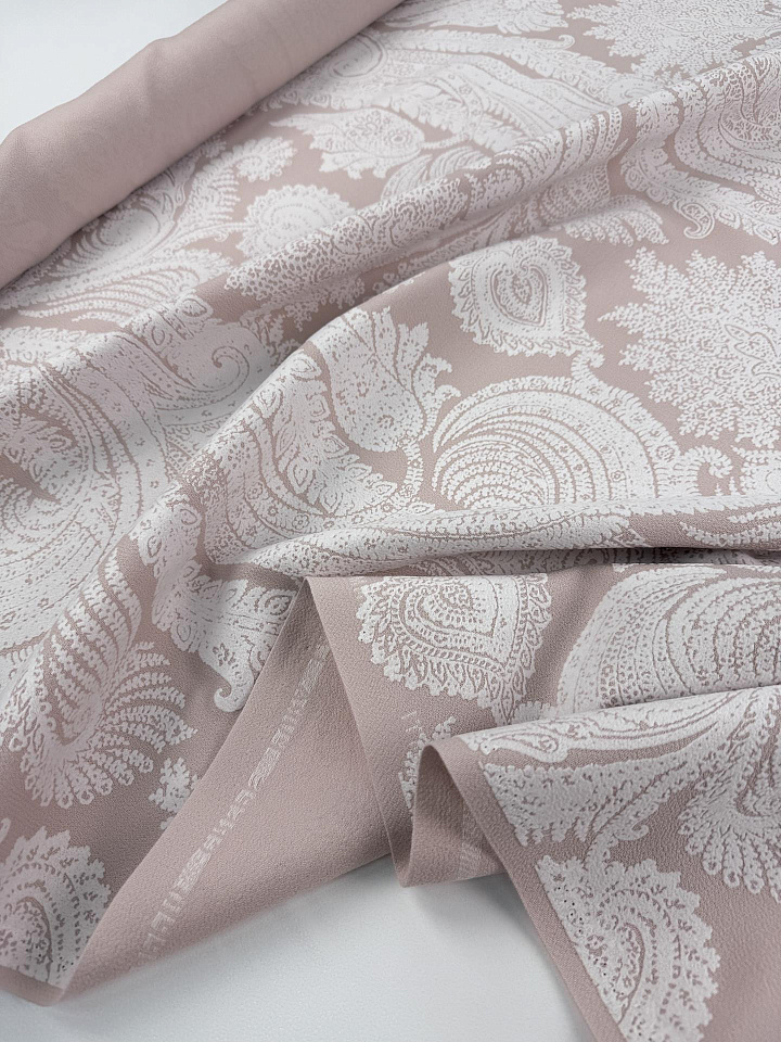 Плательная шерсть дабл креп (н) белый принт из флока на светло-серо-розовом - цена 10 800 ₽ У нас самые доступные цены на в Москве, доставка по всей России - интернет магазин тканей Тессутидея. Артикул товара для заказа - 17-1071. Страна производства ткани – Италия. Ширина этого материала - 150. Состав - Шерсть 100%. Наличие остатков на складе - 3 м