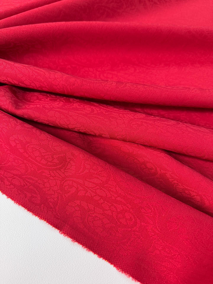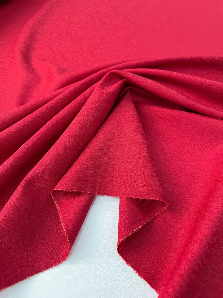 Плательная шерсть стрейч (о) красная с жаккардовым рисунком - цена 3 100 ₽ У нас самые доступные цены на в Москве, доставка по всей России - интернет магазин тканей Тессутидея. Артикул товара для заказа - 17-1064. Страна производства ткани – Италия. Ширина этого материала - 145. Состав - Шерсть 97% эластан 3%. Наличие остатков на складе - 9.5 м