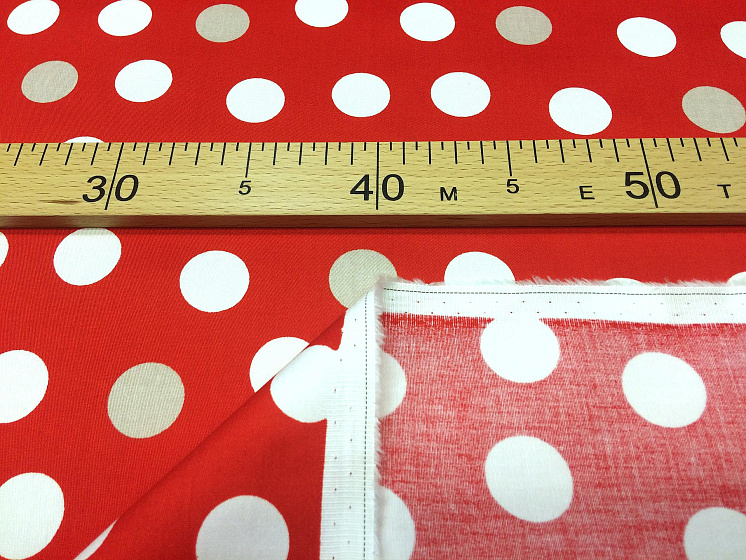 Плательная стрейч (н) бежево-белый горох на красном - цена 1 600 ₽ У нас самые доступные цены на Хлопок набивной в Москве, доставка по всей России - интернет магазин тканей Тессутидея. Артикул товара для заказа - 01-4118. Страна производства ткани – Италия. Ширина этого материала - 150. Состав - Хлопок 97% эластан 3%. Наличие остатков на складе - 10.3 м