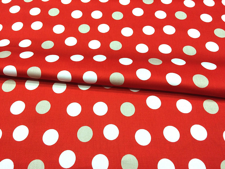 Плательная стрейч (н) бежево-белый горох на красном Арт. 01-4118