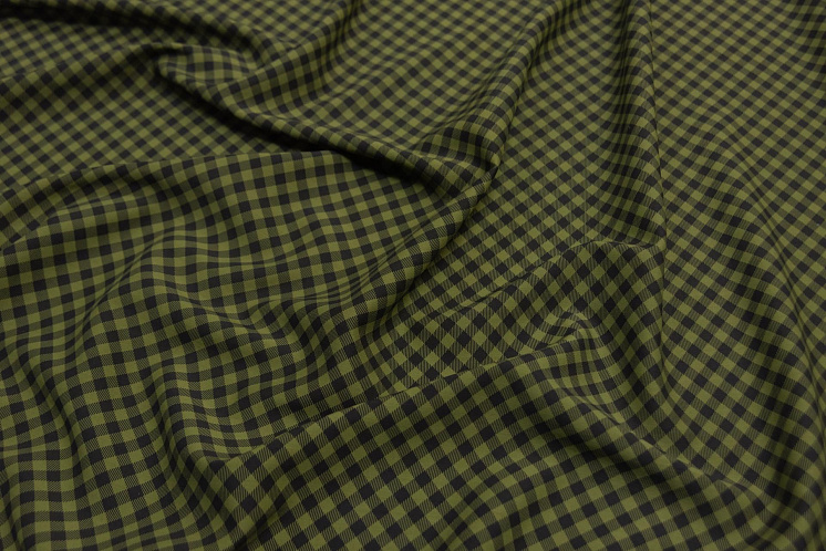 Плательная стрейч (н) черно-зеленая диагональная клетка в стиле Prada - цена 2 800 ₽ У нас самые доступные цены на Плательные ткани в Москве, доставка по всей России - интернет магазин тканей Тессутидея. Артикул товара для заказа - 17-0983. Страна производства ткани – Италия. Ширина этого материала - 160. Состав - Шерсть 97% эластан 3%. Наличие остатков на складе - 5.85 м