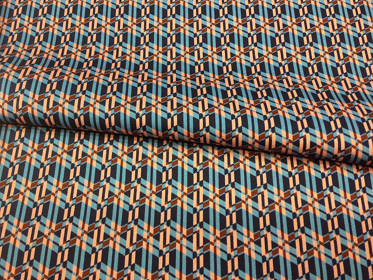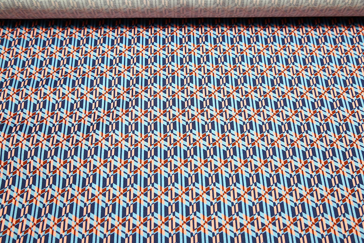 Плательная стрейч (н) красно-сине-розовый геометрический орнамент - цена 1 900 ₽ У нас самые доступные цены на Хлопок набивной в Москве, доставка по всей России - интернет магазин тканей Тессутидея. Артикул товара для заказа - 01-3553. Страна производства ткани – Италия. Ширина этого материала - 140. Состав - Хлопок 98% эластан 2%. Наличие остатков на складе - 4.9 м