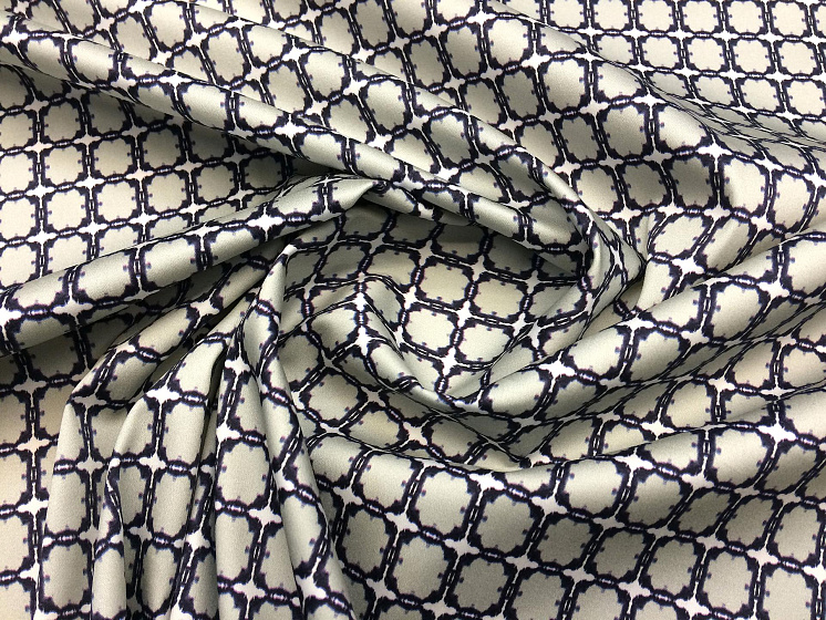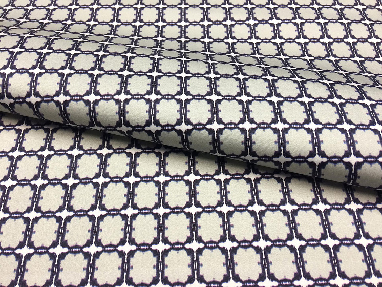 Плательная стрейч (н) серо-фиолетовый геометрический орнамент на белом - цена 1 600 ₽ У нас самые доступные цены на Хлопок набивной в Москве, доставка по всей России - интернет магазин тканей Тессутидея. Артикул товара для заказа - 01-4039. Страна производства ткани – Италия. Ширина этого материала - 150. Состав - Хлопок 97% эластан 3%. Наличие остатков на складе - 9.7 м