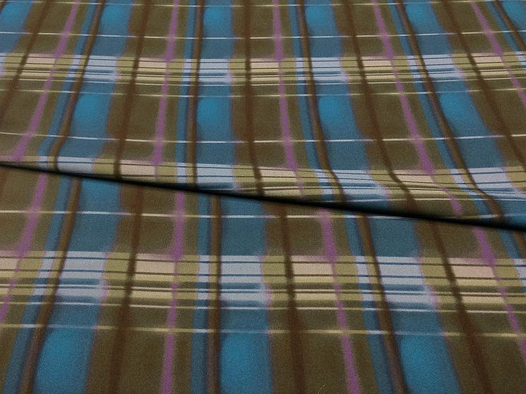 Плательная стрейч (н) сине-коричнево-сиреневая стилизованная клетка Арт. 04-1118