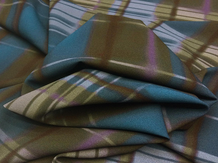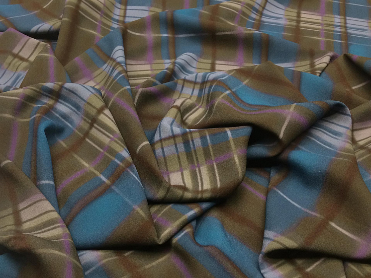 Плательная стрейч (н) сине-коричнево-сиреневая стилизованная клетка - цена 2 200 ₽ У нас самые доступные цены на Плательные ткани в Москве, доставка по всей России - интернет магазин тканей Тессутидея. Артикул товара для заказа - 04-1118. Страна производства ткани – Италия. Ширина этого материала - 135. Состав - Вискоза 97% эластан 3%. Наличие остатков на складе - 4.1 м