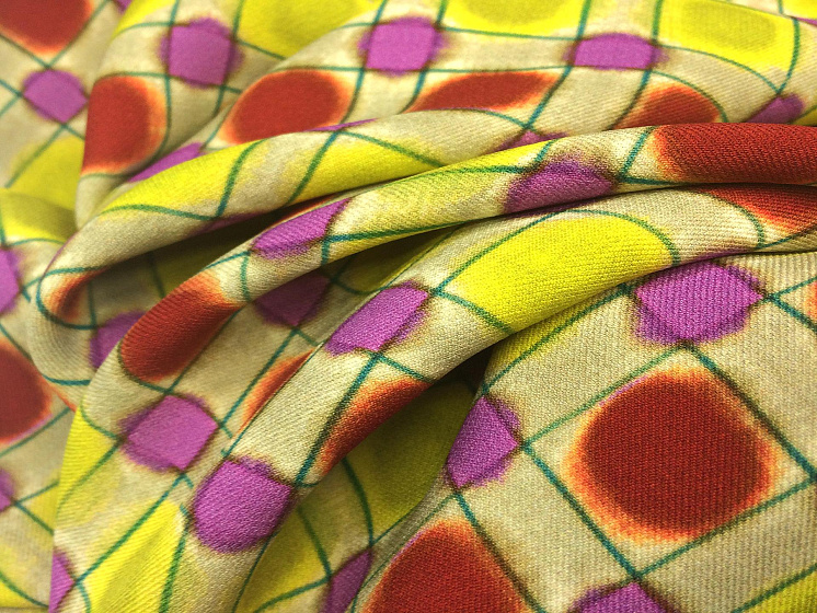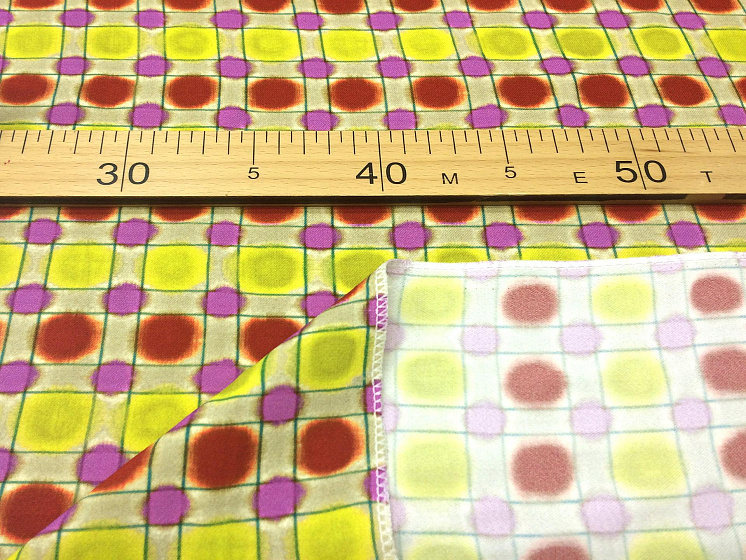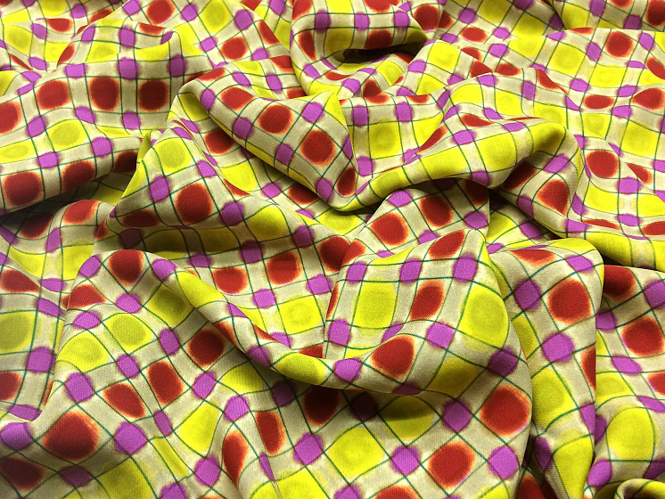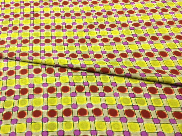 Плательная стрейч (н) яркий стилизованный горох на бежево-зеленой клетке - цена 2 300 ₽ У нас самые доступные цены на в Москве, доставка по всей России - интернет магазин тканей Тессутидея. Артикул товара для заказа - 04-1117. Страна производства ткани – Италия. Ширина этого материала - 150. Состав - Вискоза 67% хлопок 31% эластан 2%. Наличие остатков на складе - 11.9 м
