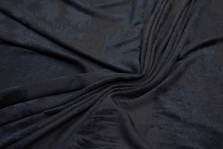 Плательная велюр стрейч (о) черный цветочный орнамент на черном - цена 2 200 ₽ У нас самые доступные цены на в Москве, доставка по всей России - интернет магазин тканей Тессутидея. Артикул товара для заказа - 03-6197. Страна производства ткани – Италия. Ширина этого материала - 135. Состав - Шелк 50% вискоза 46% эластан 4%. Наличие остатков на складе - 11.4 м