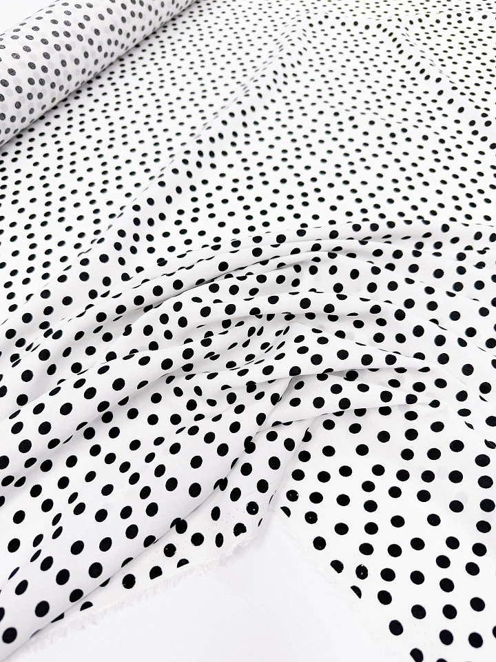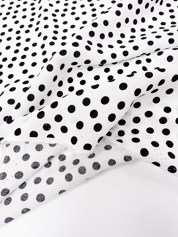 Плательная вискоза 160 г/м (н) черный горох на белом - цена 2 200 ₽ У нас самые доступные цены на в Москве, доставка по всей России - интернет магазин тканей Тессутидея. Артикул товара для заказа - 04-1836. Страна производства ткани – Италия. Ширина этого материала - 140. Состав - Вискоза 100%. Наличие остатков на складе - 11.7 м