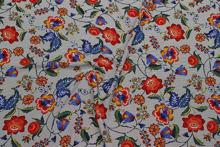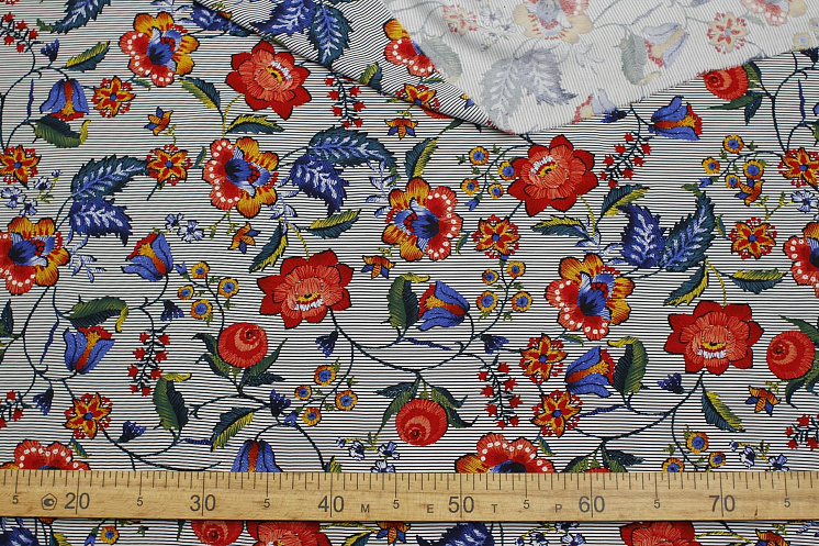 Плательная вискоза 180 г/м (н) цветочный рисунок на черно-белой полоске - цена 1 600 ₽ У нас самые доступные цены на Плательные ткани в Москве, доставка по всей России - интернет магазин тканей Тессутидея. Артикул товара для заказа - 04-1713. Страна производства ткани – Италия. Ширина этого материала - 150. Состав - Вискоза 100%. Наличие остатков на складе - 9.3 м