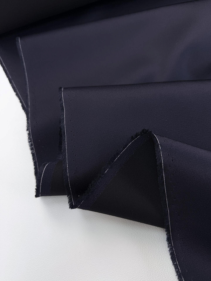 Плательная вискоза+ацетат продублированная (о) темно-синяя - цена 2 400 ₽ У нас самые доступные цены на Плательные ткани в Москве, доставка по всей России - интернет магазин тканей Тессутидея. Артикул товара для заказа - 03-7447. Страна производства ткани – Италия. Ширина этого материала - 140. Состав - Вискоза 70% ацетат 30%. Наличие остатков на складе - 15.8 м