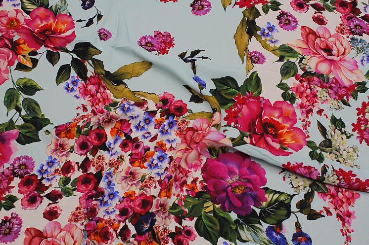 Плательная вискоза кади (н) крупный цветочный рисунок на светло-бирюзовом - цена 2 600 ₽ У нас самые доступные цены на Плательные ткани в Москве, доставка по всей России - интернет магазин тканей Тессутидея. Артикул товара для заказа - 04-1622. Страна производства ткани – Италия. Ширина этого материала - 150. Состав - Вискоза 100%. Наличие остатков на складе - 11.3 м
