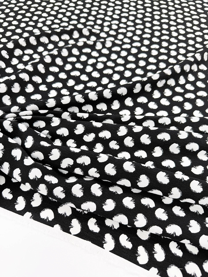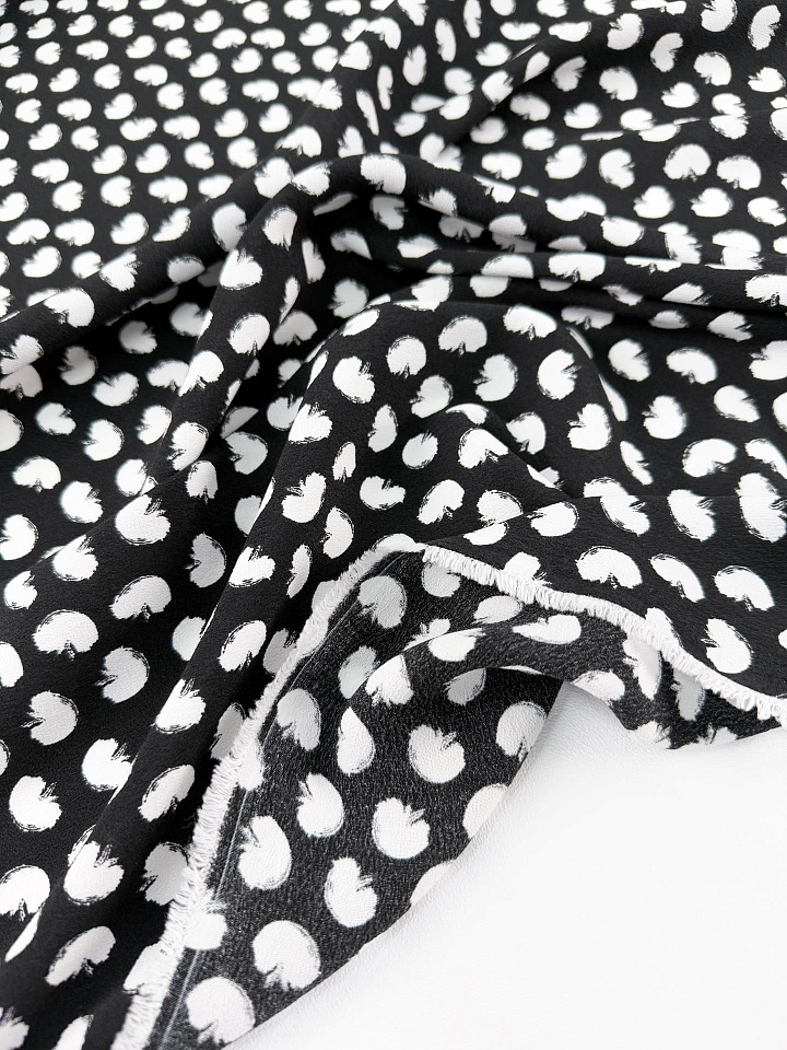 Плательная вискоза креп 166 г/м (н) белый рисунок на черном - цена 2 100 ₽ У нас самые доступные цены на в Москве, доставка по всей России - интернет магазин тканей Тессутидея. Артикул товара для заказа - 04-1831. Страна производства ткани – Италия. Ширина этого материала - 130. Состав - Вискоза 100%. Наличие остатков на складе - 11.8 м