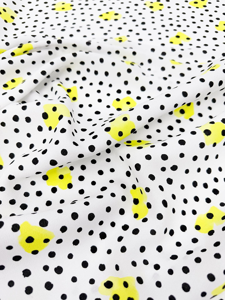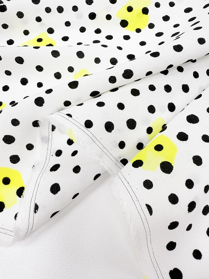 Плательная вискоза креп 170 г/м (н) черный стилизованный горох на белом - цена 2 100 ₽ У нас самые доступные цены на в Москве, доставка по всей России - интернет магазин тканей Тессутидея. Артикул товара для заказа - 04-1835. Страна производства ткани – Италия. Ширина этого материала - 140. Состав - Вискоза 100%. Наличие остатков на складе - 12.1 м