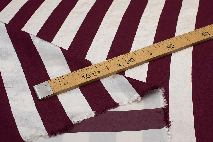 Плательная вискоза (н) бело-бордовая полоска - цена 1 500 ₽ У нас самые доступные цены на Плательные ткани в Москве, доставка по всей России - интернет магазин тканей Тессутидея. Артикул товара для заказа - 04-1226. Страна производства ткани – Италия. Ширина этого материала - 145. Состав - Вискоза 80% полиэстер 20%. Наличие остатков на складе - 2.6 м