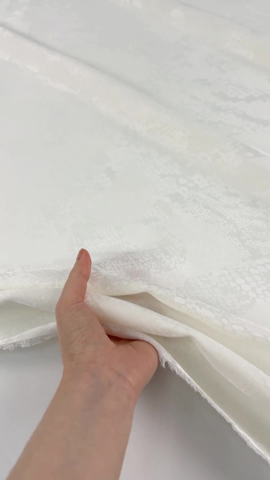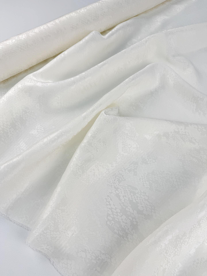 Плательная вискоза (н) белый жаккардовый рисунок - цена 2 400 ₽ У нас самые доступные цены на в Москве, доставка по всей России - интернет магазин тканей Тессутидея. Артикул товара для заказа - 04-1858. Страна производства ткани – Италия. Ширина этого материала - 150. Состав - Вискоза 100%. Наличие остатков на складе - 10 м