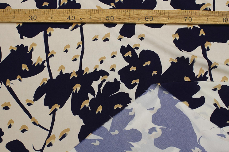 Плательная вискоза (н) бежево-синяя абрстракция на молочном - цена 2 200 ₽ У нас самые доступные цены на Плательные ткани в Москве, доставка по всей России - интернет магазин тканей Тессутидея. Артикул товара для заказа - 04-1745. Страна производства ткани – Италия. Ширина этого материала - 160. Состав - Вискоза 100%. Наличие остатков на складе - 13.2 м