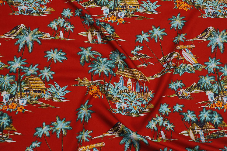 Плательная вискоза (н) гавайский рисунок на красном - цена 2 800 ₽ У нас самые доступные цены на Плательные ткани в Москве, доставка по всей России - интернет магазин тканей Тессутидея. Артикул товара для заказа - 04-1753. Страна производства ткани – Италия. Ширина этого материала - 150. Состав - Вискоза 100%. Наличие остатков на складе - 10.2 м
