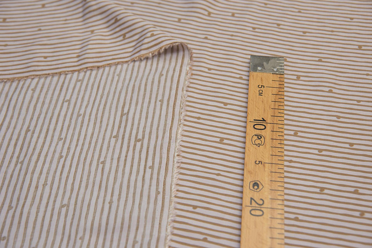 Плательная вискоза (н) коричневая полоска на кремовом - цена 1 600 ₽ У нас самые доступные цены на Плательные ткани в Москве, доставка по всей России - интернет магазин тканей Тессутидея. Артикул товара для заказа - 04-1349. Страна производства ткани – Италия. Ширина этого материала - 145. Состав - Вискоза 100%. Наличие остатков на складе - 10.7 м