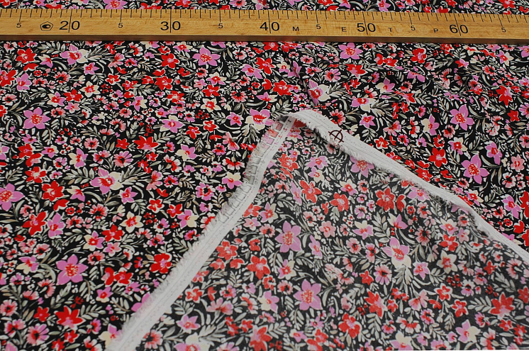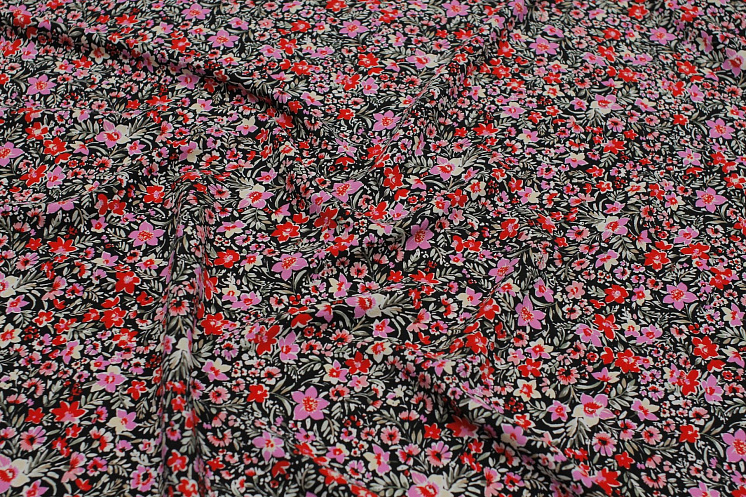 Плательная вискоза (н) красно-розовый цветочный рисунок на черном Арт. 04-1617