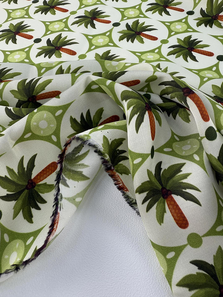 Плательная вискоза (н) пальмы - цена 2 400 ₽ У нас самые доступные цены на в Москве, доставка по всей России - интернет магазин тканей Тессутидея. Артикул товара для заказа - 04-1819. Страна производства ткани – Италия. Ширина этого материала - 150. Состав - Вискоза 100%. Наличие остатков на складе - 9.6 м