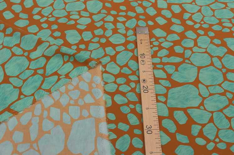 Плательная вискоза (н) салатовый рисунок на оранжево-коричневом - цена 1 800 ₽ У нас самые доступные цены на Плательные ткани в Москве, доставка по всей России - интернет магазин тканей Тессутидея. Артикул товара для заказа - 04-1520. Страна производства ткани – Италия. Ширина этого материала - 150. Состав - Вискоза 100%. Наличие остатков на складе - 9.2 м