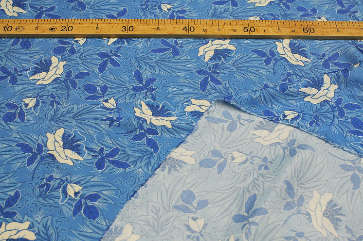 Плательная вискоза (н) сине-бело-голубой растительный рисунок - цена 2 800 ₽ У нас самые доступные цены на Плательные ткани в Москве, доставка по всей России - интернет магазин тканей Тессутидея. Артикул товара для заказа - 04-1615. Страна производства ткани – Италия. Ширина этого материала - 140. Состав - Вискоза 100%. Наличие остатков на складе - 15.8 м