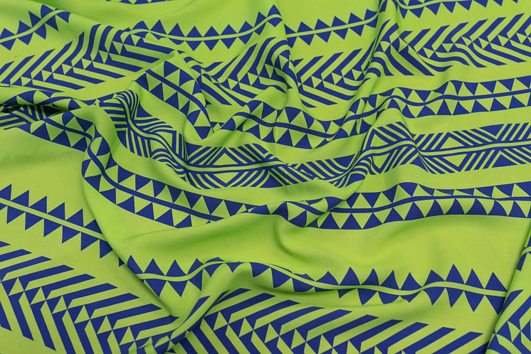 Плательная вискоза (н) сине-салатовый геометрический рисунок Арт. 04-1456