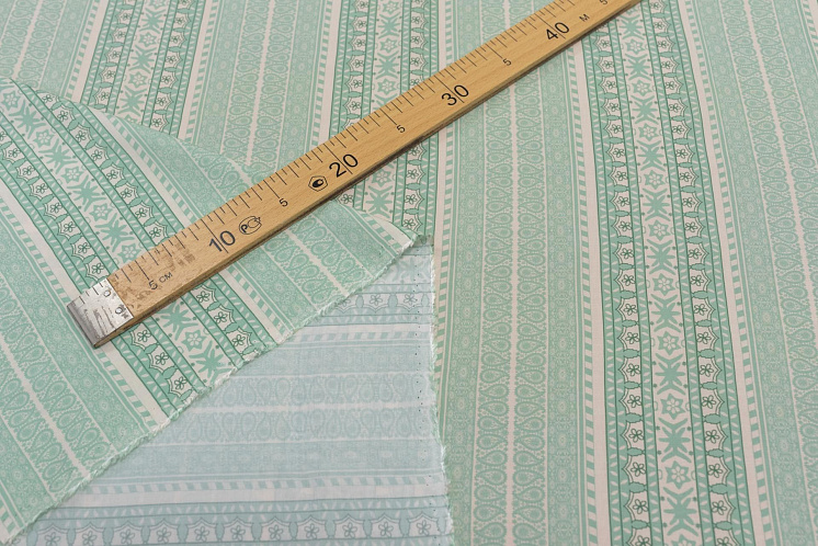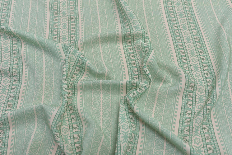 Плательная вискоза (н) стилизованные мятно-молочные полосы - цена 2 100 ₽ У нас самые доступные цены на Плательные ткани в Москве, доставка по всей России - интернет магазин тканей Тессутидея. Артикул товара для заказа - 04-1464. Страна производства ткани – Италия. Ширина этого материала - 145. Состав - Вискоза 100%. Наличие остатков на складе - 4.2 м