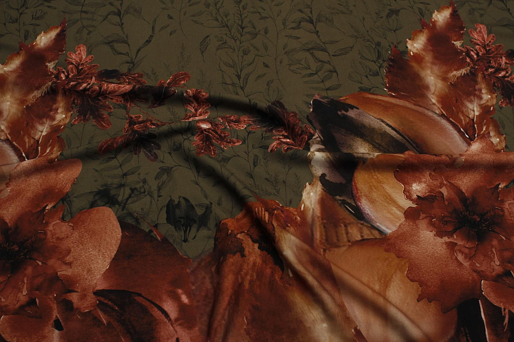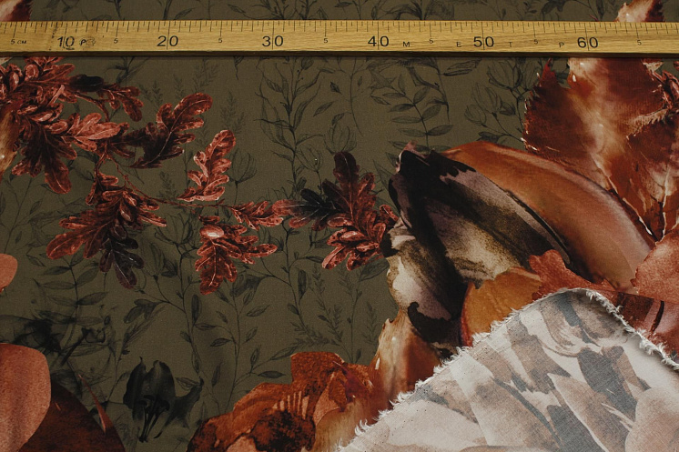 Плательная вискоза (н) цветочный бордюр и растительный орнамент на коричневом - цена 2 200 ₽ У нас самые доступные цены на Плательные ткани в Москве, доставка по всей России - интернет магазин тканей Тессутидея. Артикул товара для заказа - 04-1793. Страна производства ткани – Италия. Ширина этого материала - 150. Состав - Вискоза 100%. Наличие остатков на складе - 6 м