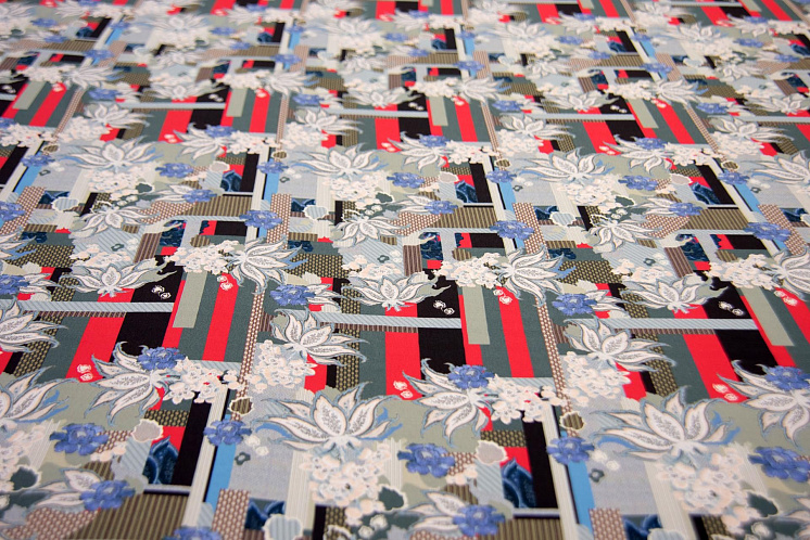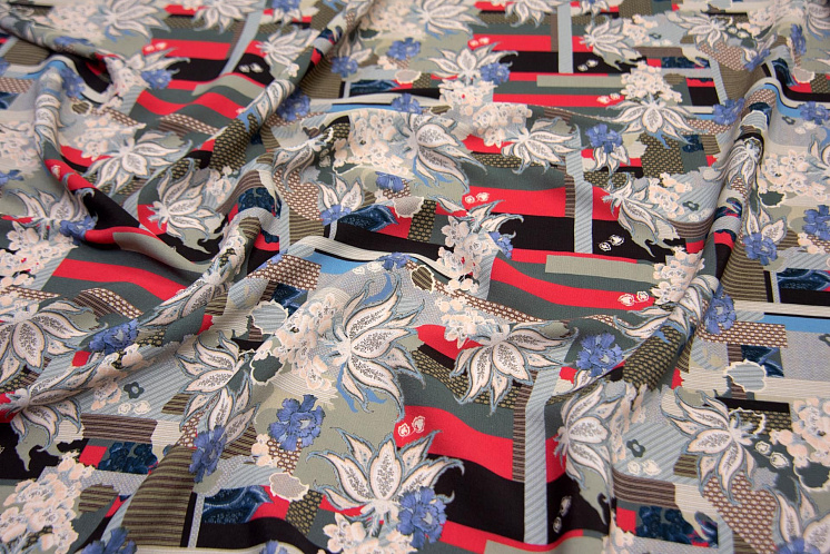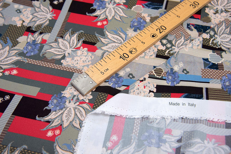 Плательная вискоза (н) цветочный рисунок на красно-серо-черной геометрии в стиле Gai Mattiolo - цена 2 200 ₽ У нас самые доступные цены на Плательные ткани в Москве, доставка по всей России - интернет магазин тканей Тессутидея. Артикул товара для заказа - 04-1389. Страна производства ткани – Италия. Ширина этого материала - 135. Состав - Вискоза 100%. Наличие остатков на складе - 5.9 м