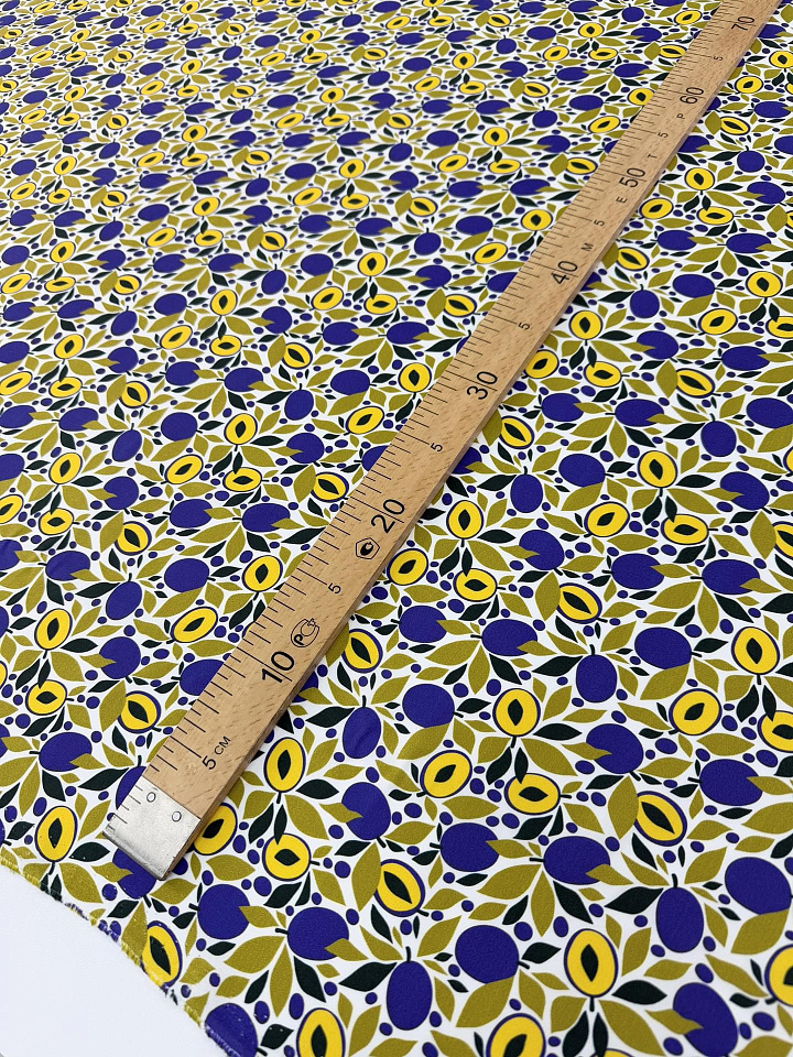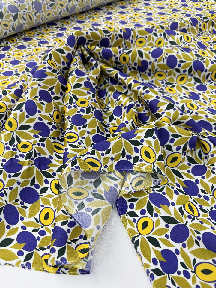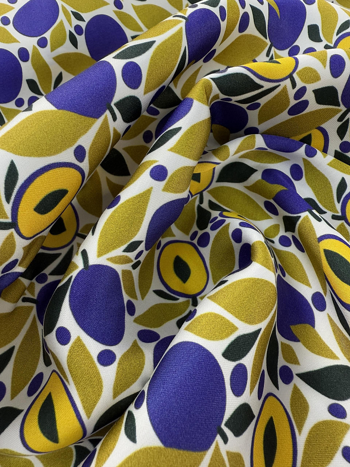 Плательная вискоза (н) желто-фиолетовый растительный рисунок - цена 2 400 ₽ У нас самые доступные цены на в Москве, доставка по всей России - интернет магазин тканей Тессутидея. Артикул товара для заказа - 04-1817. Страна производства ткани – Италия. Ширина этого материала - 150. Состав - Вискоза 100%. Наличие остатков на складе - 9.9 м