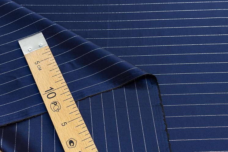 Подкладочная стрейч с люрексом (н) сине-серебрянная полоска - цена 450 ₽ У нас самые доступные цены на в Москве, доставка по всей России - интернет магазин тканей Тессутидея. Артикул товара для заказа - 07-1211. Страна производства ткани – Италия. Ширина этого материала - 140. Состав - Ацетат 88% люрекс 10% эластан 2%. Наличие остатков на складе - 30.3 м