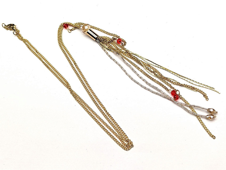 Подвеска металл золото на цепочке с красными камнями 55см Арт. F-6166
