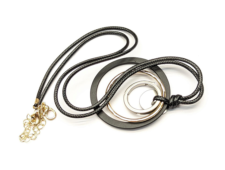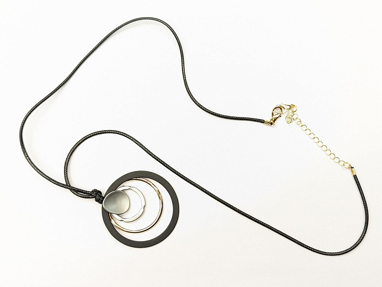 Подвеска на шнуре черно-серебряно-золотая 38см Арт. F-6171
