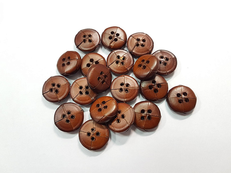 Пуговица 4 прокола плетеная кожа d-20мм коричневая Арт. F-5644