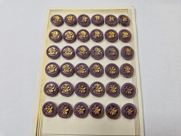 Пуговица фактурная на ножке d-14мм сиреневая с золотым напылением - цена 140 ₽ У нас самые доступные цены на в Москве, доставка по всей России - интернет магазин тканей Тессутидея. Артикул товара для заказа - F-5871. Страна производства ткани – Италия. Ширина этого материала - . Состав - . Наличие остатков на складе - 66