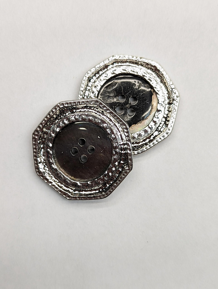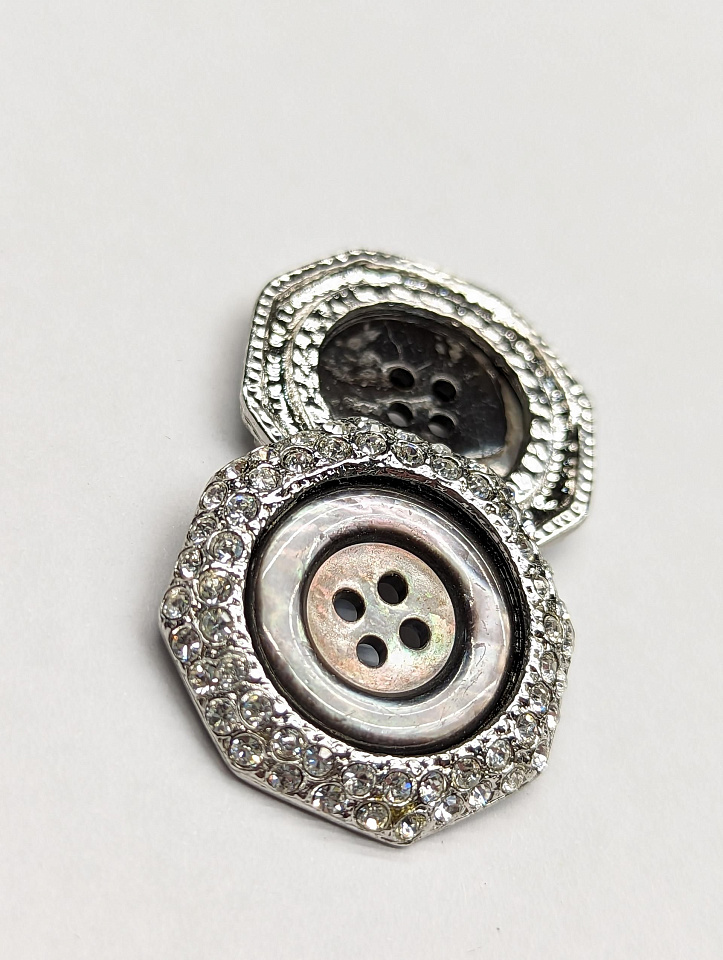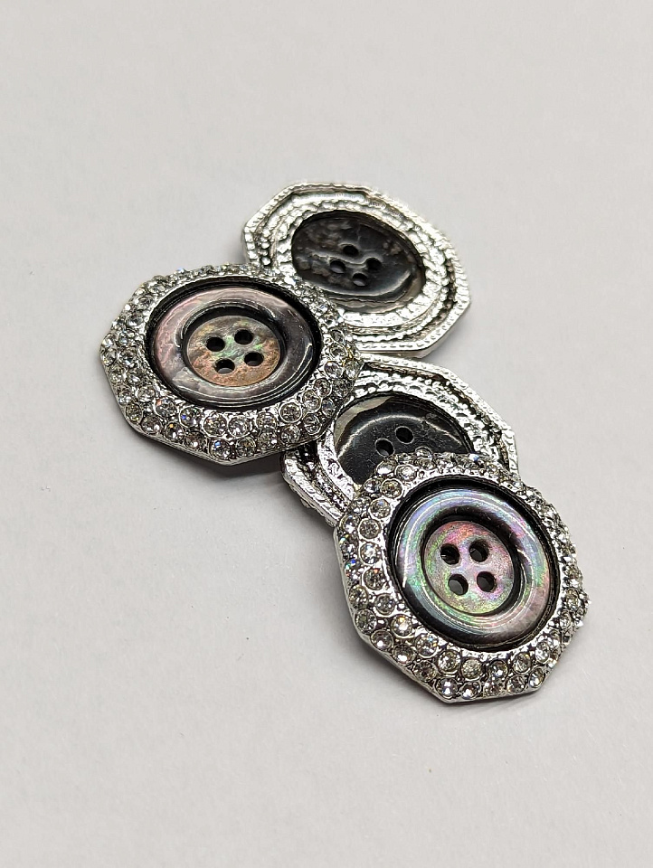 Пуговица комбинированная 4 прокола d-26мм серая ракушка со стразами Арт. F-3575