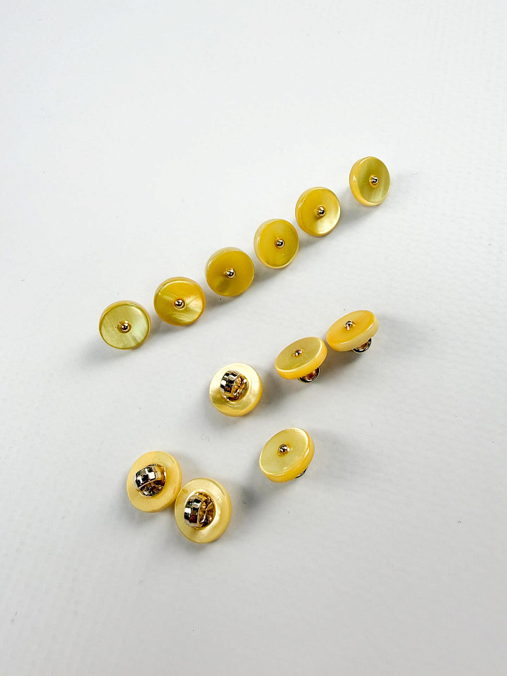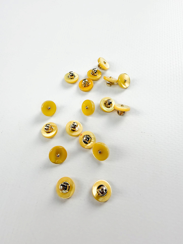 Пуговица комбинированная на ножке d-10мм желтая с золотой вставкой - цена 120 ₽ У нас самые доступные цены на в Москве, доставка по всей России - интернет магазин тканей Тессутидея. Артикул товара для заказа - F-7250. Страна производства ткани – Италия. Ширина этого материала - . Состав - Ракушка, пластик. Наличие остатков на складе - 50