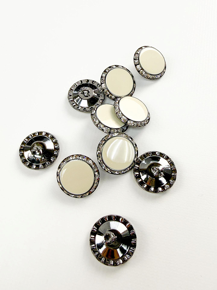 Пуговица комбинированная на ножке металл никель со стразами и молочной вставкой d-26мм - цена 600 ₽ У нас самые доступные цены на в Москве, доставка по всей России - интернет магазин тканей Тессутидея. Артикул товара для заказа - F-7234. Страна производства ткани – Италия. Ширина этого материала - . Состав - Металл. Наличие остатков на складе - 12