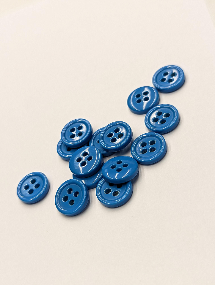 Пуговица костюмная пластик 4 прокола d-11мм темно-голубая Арт. F-6075