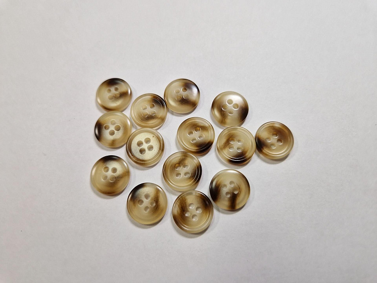 Пуговица костюмная пластик 4 прокола d-15мм бежевая с коричневыми вкраплениями - цена 30 ₽ У нас самые доступные цены на Пластик в Москве, доставка по всей России - интернет магазин тканей Тессутидея. Артикул товара для заказа - F-5897. Страна производства ткани – Италия. Ширина этого материала - . Состав - Пластик. Наличие остатков на складе - 3